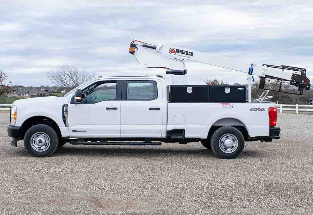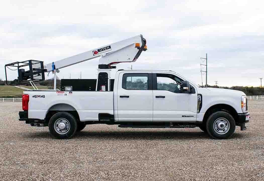 UTEC's most versatile aerial. It can be mounted on a single wheel f350 with a 19' boom in the bed.