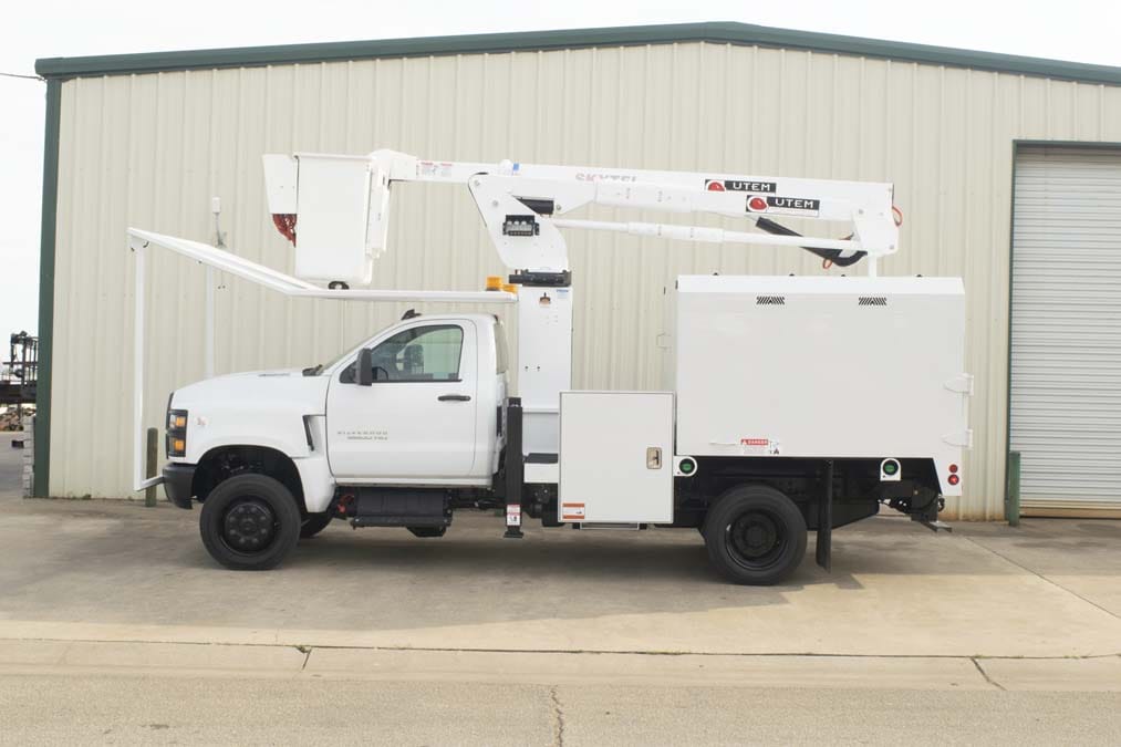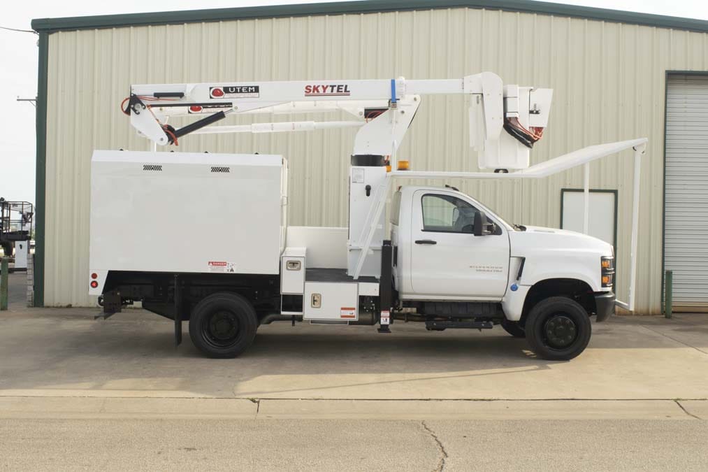 The UTEM Tree Trimming Truck (TTT) is a purpose-built utility platform designed to support professional tree trimming, vegetation management, and right-of-way maintenance. Engineered for arborists, municipalities, and utility crews, the TTT combines aerial access, stable positioning, and job-ready functionality to help crews work safely and efficiently at height.